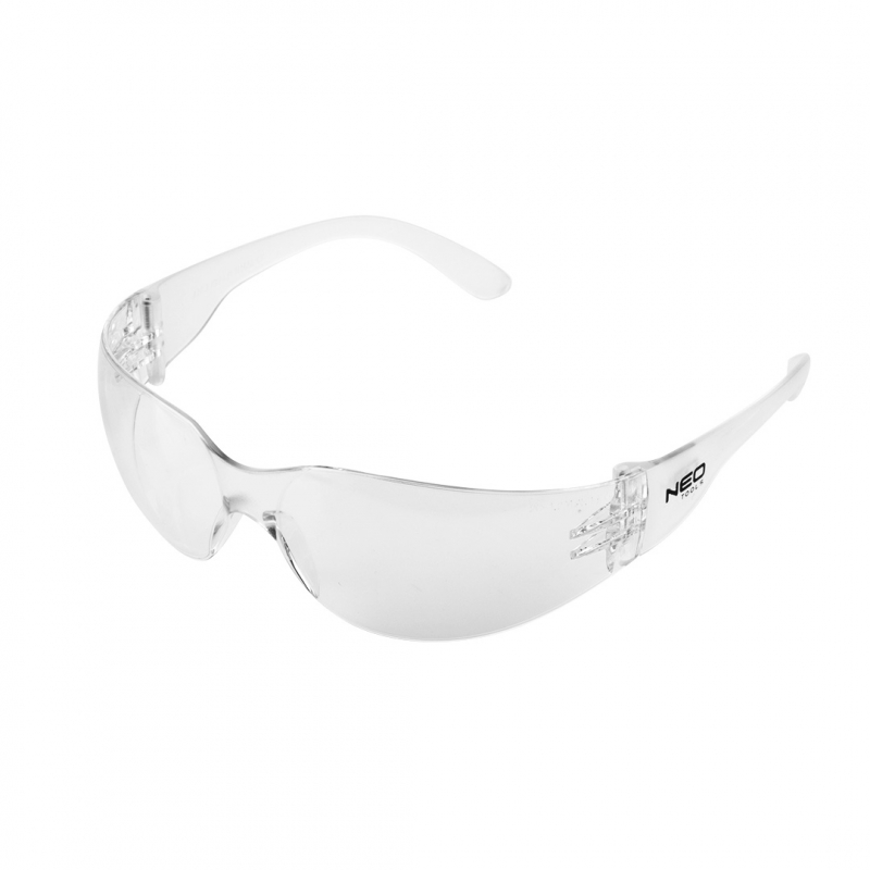 Okulary ochronne, białe soczewki, klasa odporności F (odporność na uderzenie cząstkami o dużej prędkości (do 45 m/s) przy niskiej energii uderzenia), Filtr UV 2C-1,2- ochrona przed promieniowanie UV , lepsze rozpoznawanie kolorów, stopień zaciemnienia 1,2 ; przezroczyste szybki ochronne z poliwęglanu, certyfikat CE