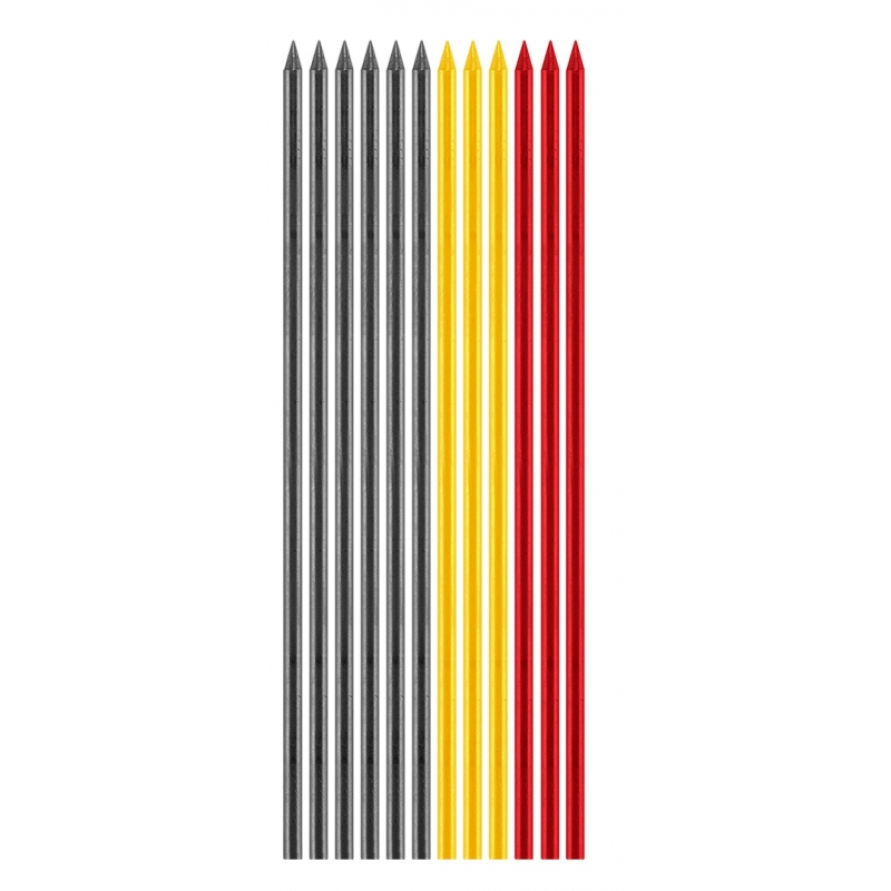Ołówek stolarski / murarski automatyczny z temerówką, 12 grafitowych wkładów w trzech kolorach: czarny, czerwony, żółty
