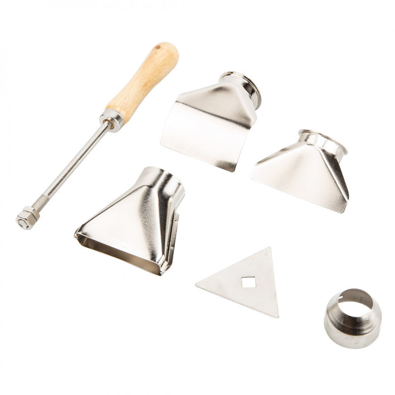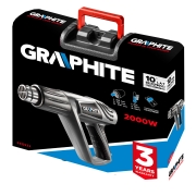 Opalarka 2000W, zakres temperatur: I: 25ºC, II: 350ºC, III: 550ºC, przepływ powietrza I: 300 l/min, II: 150 l/min, III: 500 l/min, bimetalowe zabezpieczenie przed pzegrzaniem, (LxH) 270 x 195 mm, masa 0.9 kg, akcesoria: 4 dysze, skrobak z rączką, walizka