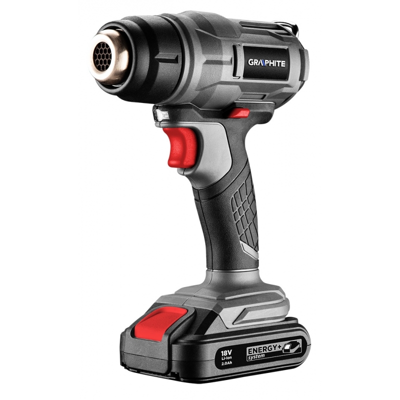 Opalarka akumulatorowa 18V, Li-Ion, przepływ powietrza 200 l/min, temperatura 550°C, masa 0.6 kg, akcesoria: dysze – 3szt., kompatybilna z akumulatorami Energy+
