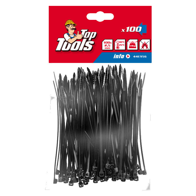 Opaski zaciskowe 2.5 x 100 mm, 100 szt., czarne