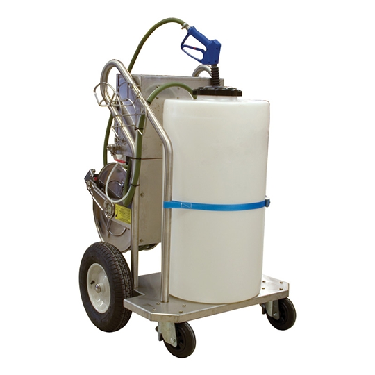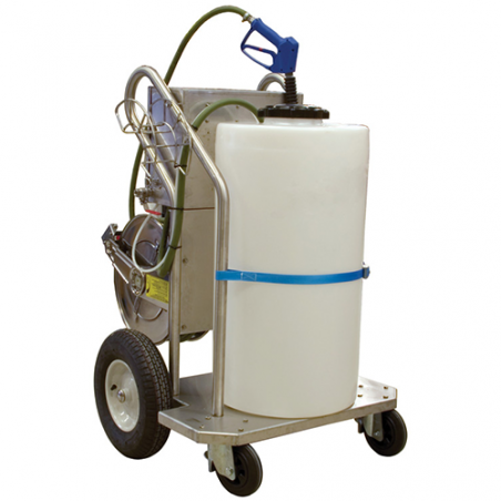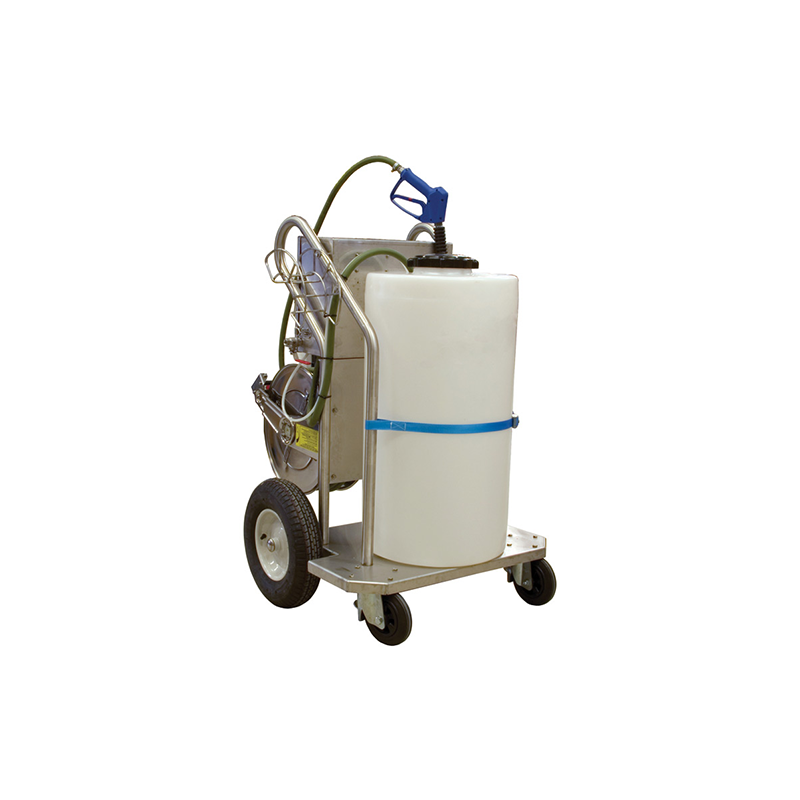 Urządzenie służy do oczyszczania dużych powierzchni i maszyn w stosunkowo krótkim czasie. Opryskiwacz jest przeznaczony do spryskiwania niskociśnieniowego zarówno alkalicznych jak i ropopochodnych środków czyszczących i odtłuszczających. Czyni opłacalnym stosowanie drogich chemikaliów przez ich niskie zużycie. Napełniacz Kem: Pompa napędzona 230V, wyposażona w system chroniący, maksymalne ciśnienie 4,5 barów. Pompa jest montowana na ruchomym nierdzewnym wózku, z nierdzewną rolką do węża i 20 metrowym wężem kem 3/8 oraz z pojemnikiem na ciecze z plastiku o pojemności 100 litrów. Stałe ciśnienie cieczy zapewnia ekonomiczne czyszczenie i dobre rezultaty.