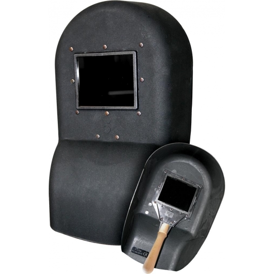 Tarcza spawalnicza do trzymania w ręku z rączką z twardego drewna. - wykonana z tworzywa - reslenu - wymiar szybki: 90x110 mm - filtr ochronny 10-11 DIN - stworzona aby chronić oczy oraz twarz podczas prac związanych ze spawaniem w miejscu pracy takim jak plac budowy lub fabryka - spełnia wymagania normy EN175