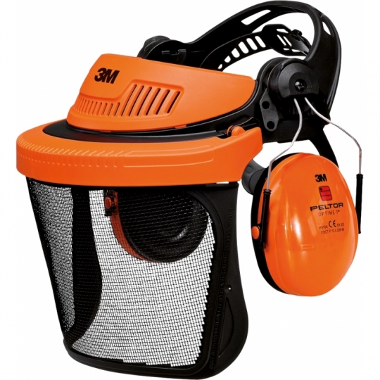 Zestaw ochronny dla leśnictwa. - nagłowie serii G500, siatkowa osłona twarzy 5C, nauszniki przeciwhałasowe Optime I - praktyczne, wygodne rozwiązanie, gdy jest wymagana ochrona twarzy i słuchu, a nie jest wymagana ochrona głowy - przednia osłona: wentylacja zapewnia większy komfort użytkowania, przednia osłona umożliwia również zamocowanie przewodu do aktywnej komunikacji - w celu zwiększenia ochrony oczu, nagłowie G500 może być używane z zintegrowanymi okularami ochronnymi serii V9 - nagłowie może być używane z lub bez ochronników słuchu - nagłowie umożliwia zamontowanie ochronników słuchu - spełnia wymagania norm EN1731, EN352-3 oraz EN397
