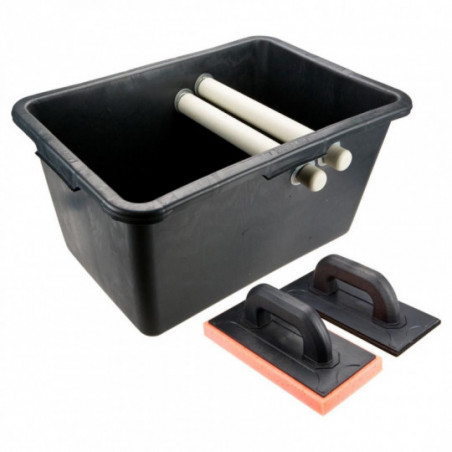 Zestaw glazurniczy, pojemnik 40 l, paca z gumą, paca z gąbką miękką, podwójny wyciskacz rolkowy na pojemniku