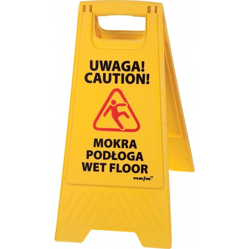 Stojak ze znakiem Wet Floor (Uwaga mokra podłoga).