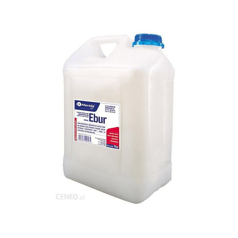 Pasta do mycia silnie zabrudzonych rąk MERIDA EBUR®. - usuwa zabrudzenia nie niszcząc skóry rąk - pasta nie zatyka kanalizacji - testowana dermatologicznie - odmierzoną porcję pasty można nanieść na ręce przy użyciu pompki dozującej HME-PA1 - opakowanie handlowe: kanister 5 kg