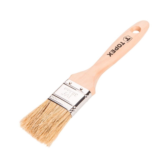 Pędzel płaski uniwersalny 1.5", uchwyt drewniany nielakierowany, skuwka stalowa, włosie naturalne, TOP 75%, do farb emulsyjnych, lateksowych i akrylowych, bejc, lakierobejc, impregnatów, farb olejnych