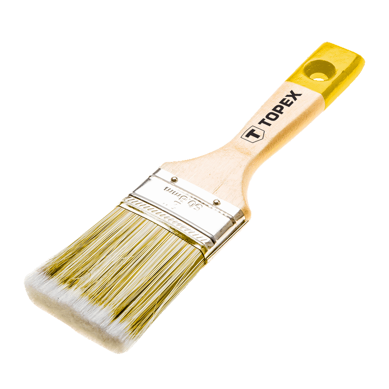 Pędzel płaski do drewna 2" uchwyt drewniany, skuwka stalowa, włosie mieszane naturalne z syntetycznym, do bejc, lakierobejc, impregnatów