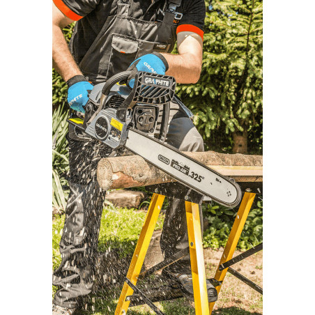 Pilarka łańcuchowa, spalinowa, 1800W/2.45 KM, prowadnica OREGON 18" (455 mm), obroty 2800 min⁻¹, zbiornik paliwa 580 ml, zbiornik oleju łańcuchowego 250 ml, typ prowadnicy OREGON 112364 91 (18”), typ łańcucha OREGON 21LPX072X, podziałka łańcucha 0,325” (8.255mm), grubość łańcucha 0.058” (1.47 mm), automatyczna pompa olejowa z ręczną regulacją, typ gaźnika WALBRO WT819, typ świecy zapłonowej BM6A/Torch, typ oleju łańcuchowego SAE 10W/30, silnik dwusuwowy, (LxWxH) 420x250x295 mm, masa 5.5 kg, akcesoria: prowadnica, łańcuch, klucz do świec z wkrętakiem, klucz sześciokątny z uchwytem „T”