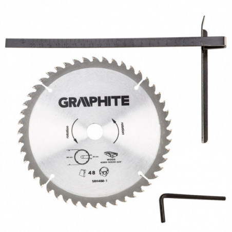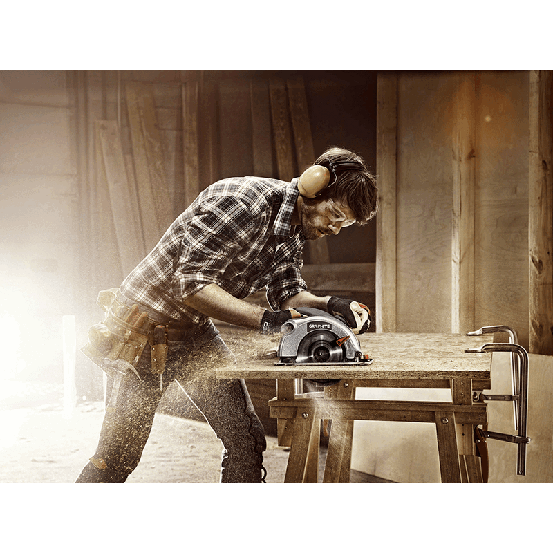 Pilarka tarczowa 1200W, tarcza 185 x 20 mm, obroty 5000 min⁻¹, cięcie pod skosem 0-45º, gł. cięcia 65/43 mm (90/45º), masa 3.8 kg, akcesoria: prowadnica równoległa, 2 tarcze do cięcia, walizka