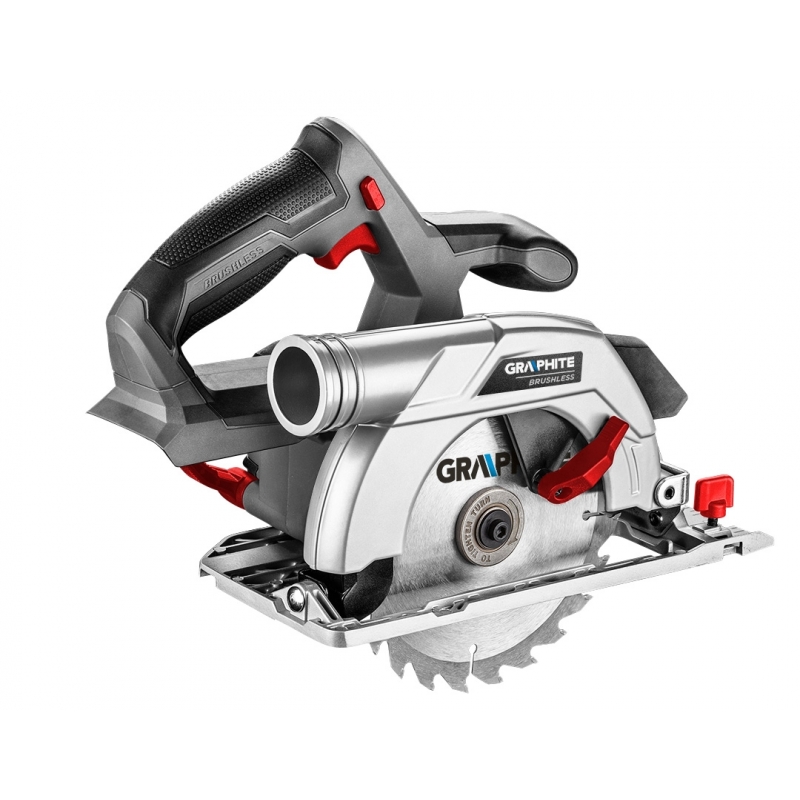 Pilarka tarczowa akumulatorowa bezszczotkowa 18V, Li-Ion, tarcza 165 x 20 mm, obroty 4200 min⁻¹, cięcie pod kątem 0-45º, gł. cięcia 52/35 mm (90/45º), wskaźnik laserowy, masa 2.95 kg, akcesoria: prowadnica równoległa