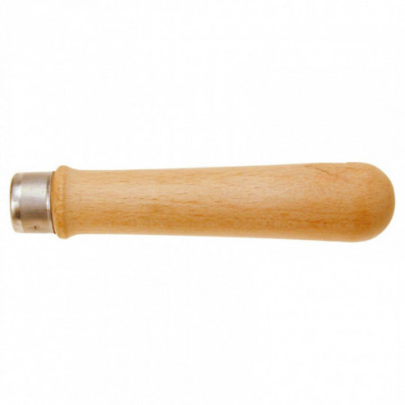 Trzonek do pilnika, drewniany, drewno bukowe, długość 135 mm, metalowy pierścień wzmacniający.