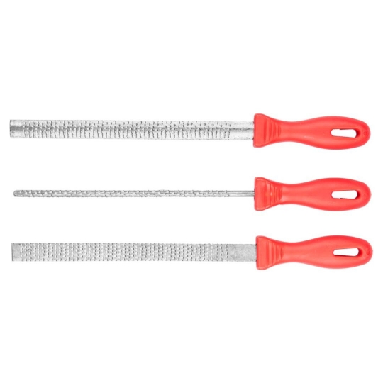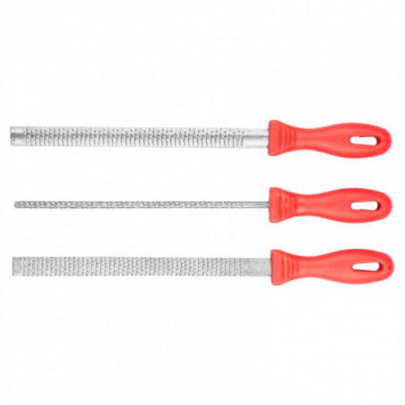 Pilniki do drewna, zestaw 3 szt., plastikowe uchwyty, przekroje: płaski, okrągły, półokrągły