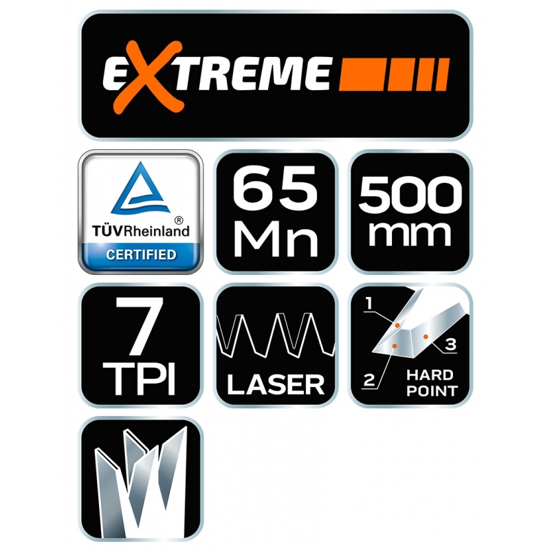 Piła płatnica 500 mm, 7 TPI, dwumateriałowy uchwyt, trójstronnie ostrzone i hartowane zęby