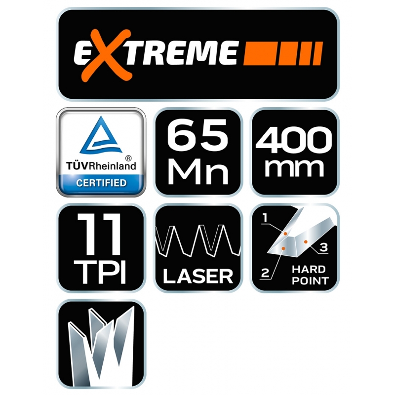 Piła płatnica 400 mm, 11 TPI, dwumateriałowy uchwyt, trójstronnie ostrzone i hartowane zęby