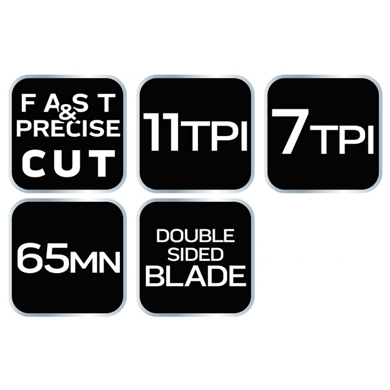 Piła japońska, długość ostrza 250 mm, dwustronna 7 i 11 TPI, stal 65 MN, zęby 3D hartowane indukcyjnie, ostrze wymienne, uchwt gumowany