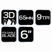 Piła ogrodowa prosta, długość ostrza 150 mm, 9 TPI, stal 65 MN, zęby 3D hartowane indukcyjnie, ostrze chowane w uchwycie, blokowane śrubą, w zestawie uchwyt do montażu na pasku