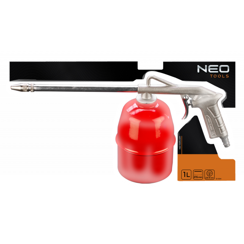 Pistolet do ropowania, zbiornik 1 litr, zużycie powietrza 400 l/min., ciśnienie robocze 4 bary, długość dyszy 215 mm, CE