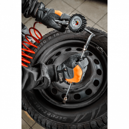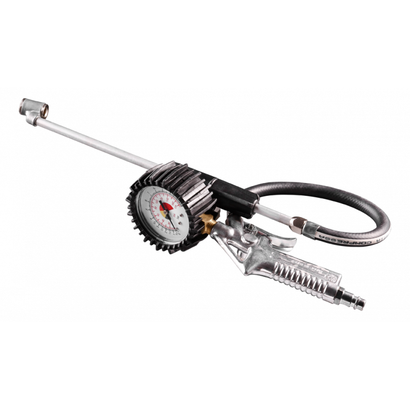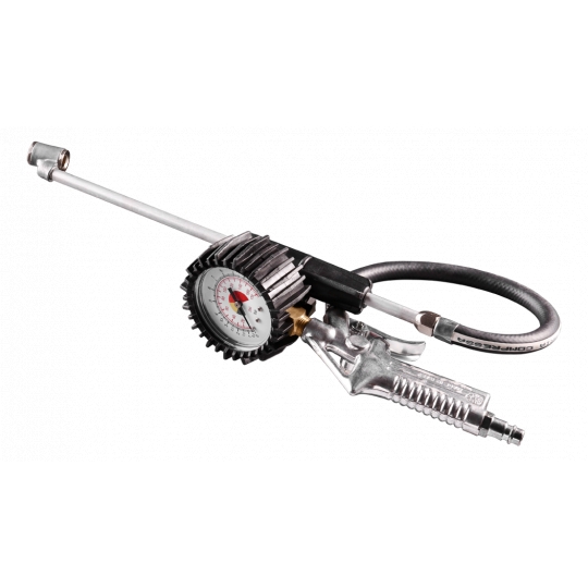 Pistolet do pompowania z manometrem O 63 mm, długa końcówka, zużycie powietrza 200 l/min., maksymalne ciśnienie robocze 12 barów, CE