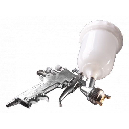 Pistolet natryskowy górny zbiornik 0.5 l, 1.4 mm, zużycie powietrza 250-350 l/min., maks. ciśnienie robocze 4 bary, 2 regulacje, CE