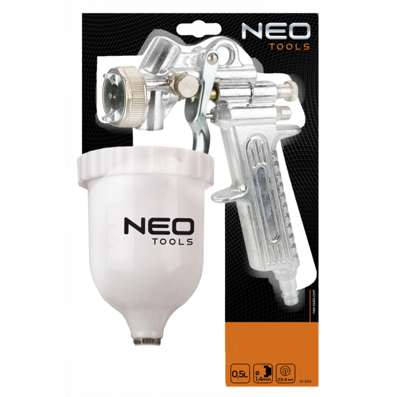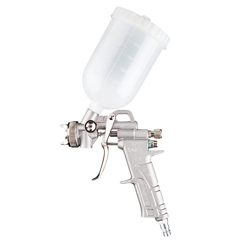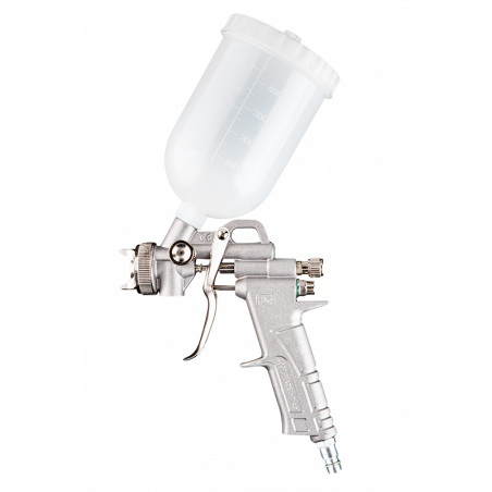 Pistolet natryskowy górny zbiornik 0.5 l, 1.4 mm, zużycie powietrza 250-350 l/min., maks. ciśnienie robocze 4 bary, 2 regulacje, CE