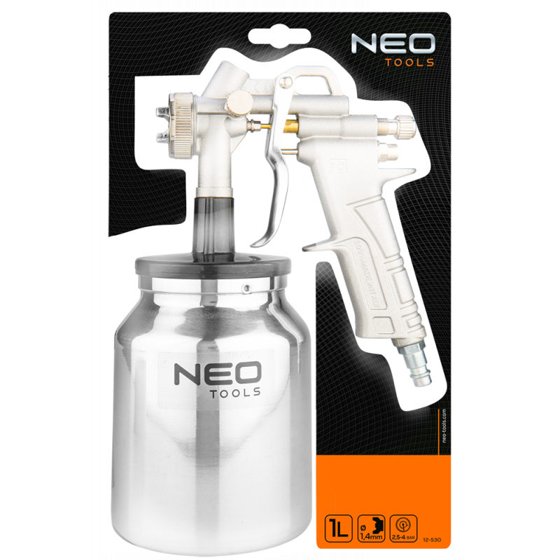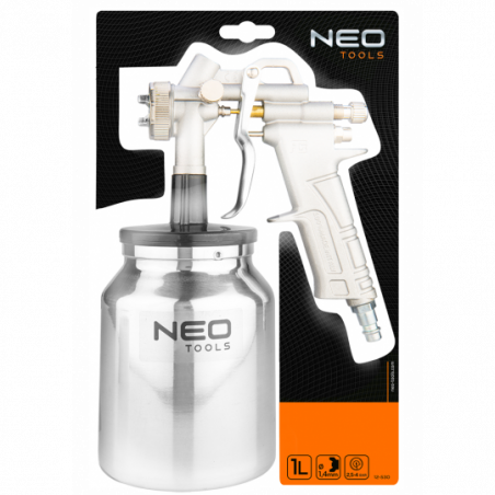 Pistolet natryskowy dolny zbiornik 1 l, 1.4 mm, zużcie powietrza 250-350 l/min., maks. ciśnienie robocze 4 bary, 2 regulacje, CE