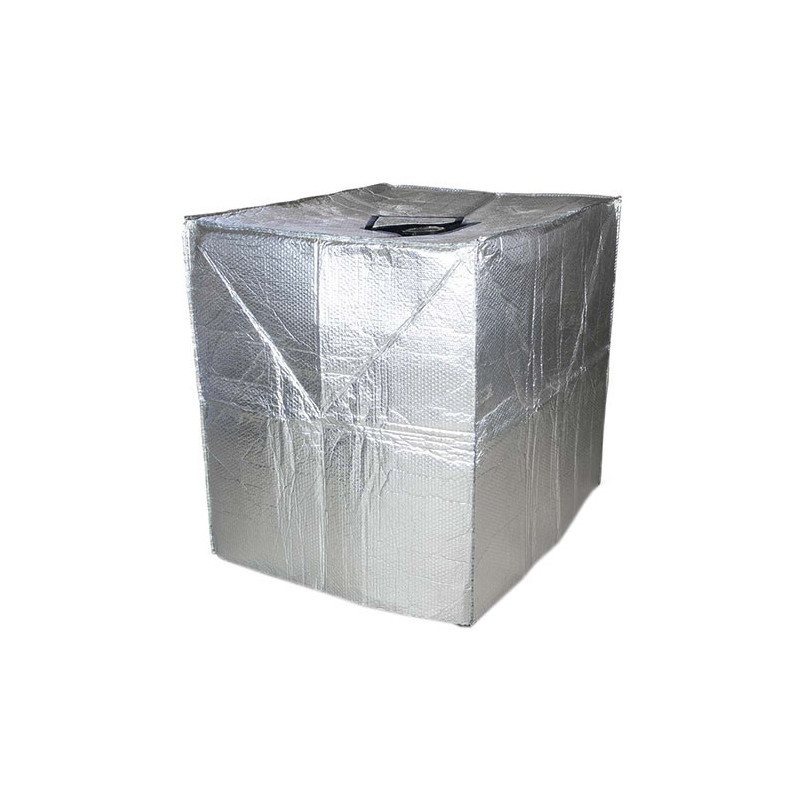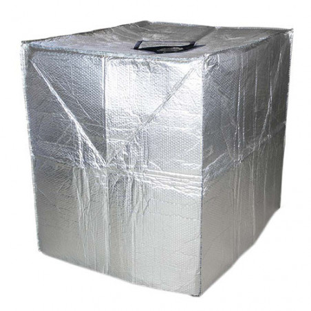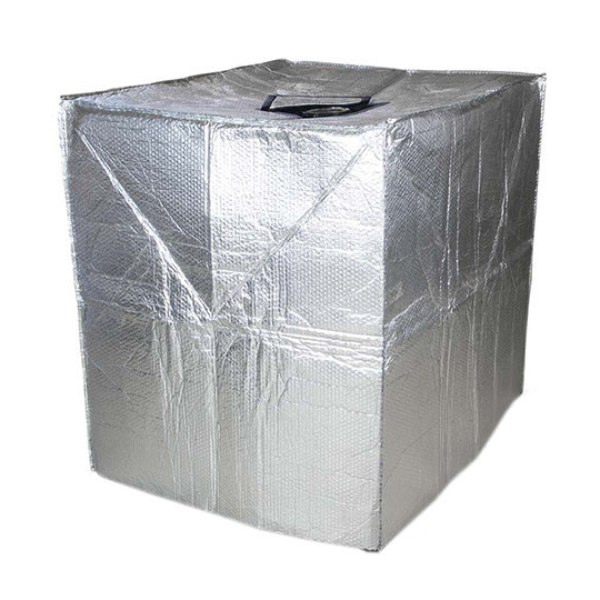 Pokrowiec termoizolacyjny z folii bąbelkowej stosuje się do termoizolacji pojemników IBC. Te pokrowce termoizolacyjne z aluminiowej folii bąbelkowej zapewniają doskonałą ochronę przed promieniowaniem słonecznym, blokując działanie promieni słonecznych padających bezpośrednio na pojemnik, gdyż odbijają promienie i zapobiegają nagrzaniu się pojemnika, dzięki czemu pojemniki można transportować bez dodatkowych osłon i/lub składować na wolnym powietrzu bez obawy o zniszczenie czy przegrzanie ich zawartości wskutek działania promieni słonecznych.