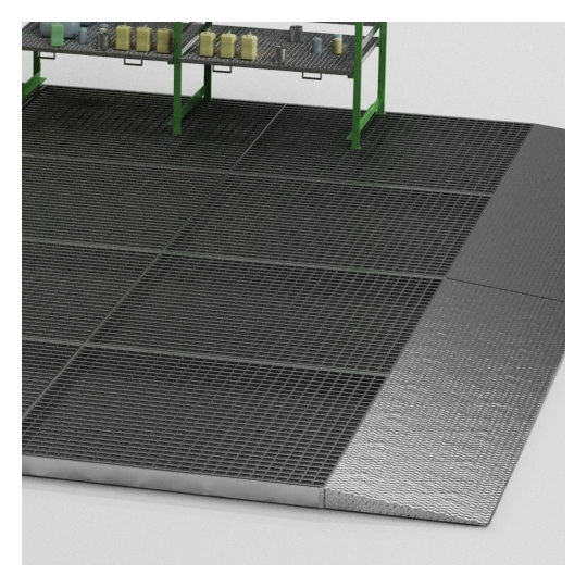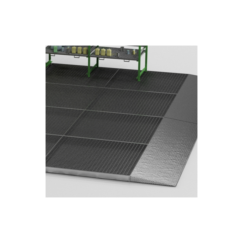 Podłoga robocza w całości wykonana z 3 mm spawanej stali w opcji pomalowanej lub za dopłatą ocynkowanej z ocynkowaną kratownicą pomostową. Stabilna, odporna na działanie mechaniczne i temperatury konstrukcja daje gwarancje długoletniego użytkowania w nawet najtrudniejszych warunkach. Konstrukcja z 3 mm blachy stalowej. Wysoka odporność na korozje. Ocynkowane ogniowo, wyjmowane kraty dla łatwego oczyszczania. Każdą część podłogi można łączyć z inną. Całość konstrukcji dopuszcza obciążenie 1100 kg/m2. Wymiary: 2000 x 2000 x 120 mm.