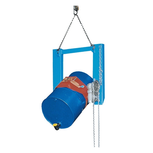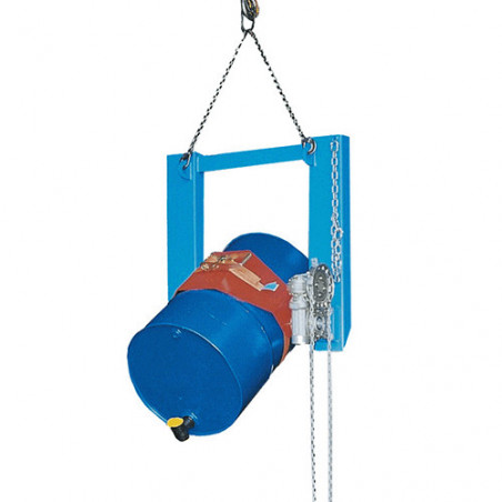 Za pomocą tego urządzenia można bezpiecznie podnosić, obracać i opróżniać beczki. Pasuje do wszystkich rodzajów beczek i może być stosowany z wózkiem widłowym i podnośnikiem. Manewrowanie za pomocą łańcucha i korby. 1000 x 1000 x 430 mm, max obciążenie 300 kg.