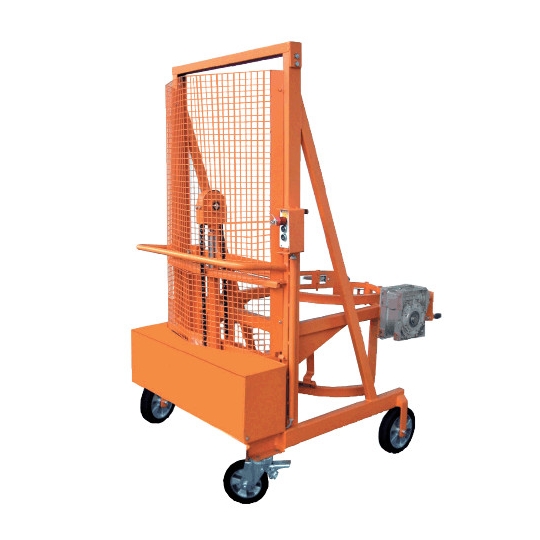 Dzięki temu podnośnikowi możliwe jest podnoszenie, obracanie, dozowanie i opróżnianie beczek. Pasuje do 200 litrowych beczek metalowych i z tworzywa. Dzięki bezpiecznemu uchwytowi wyeliminowano ryzyko upuszczenia beczki. Urządzenie z pompą elektrohydrauliczną z baterią 12V/88Ah i ładowarką 230V. Hamulec na każdym kole a jego maksymalne obciążenie to 300 kg. Max obciążenie: 350 kg.