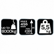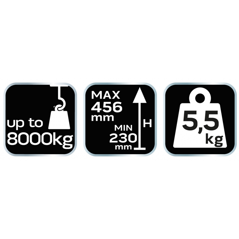 Podnośnik słupkowy 8T, 230 - 456 mm, wymiary: 117x120mm, waga 5.5 kg