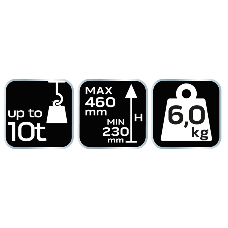 Podnośnik słupkowy 10 t, 230-460 mm, wymiary: 125x123mm, waga 6 kg, CE