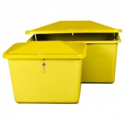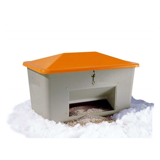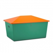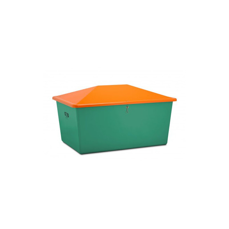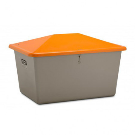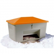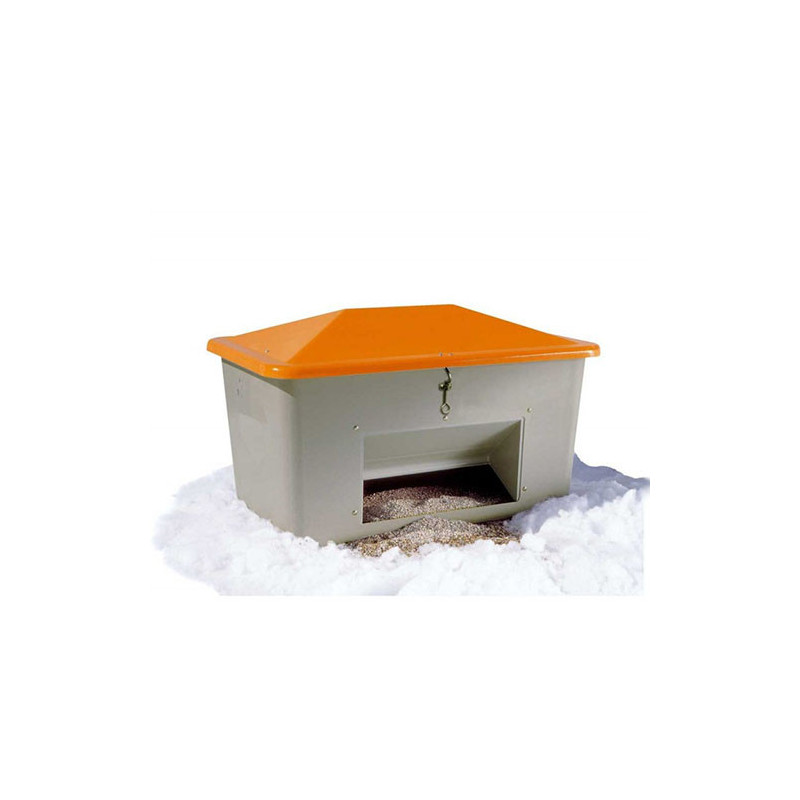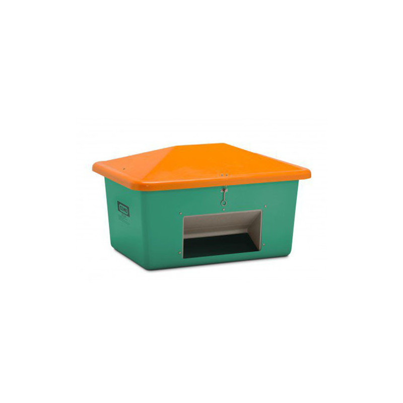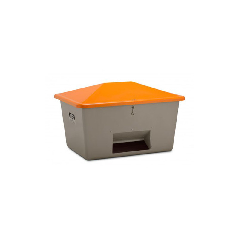 Pojemnik na piasek / sól / żwir wykonany z włókna sztucznego. Pojemniki są odporne na działania atmosferyczne oraz korozję. Istnieje możliwość sztaplowania pojemników, co daje oszczędność miejsca podczas ich magazynowania. Pojemnik zamykany na zatrzask ze stali nierdzewnej.