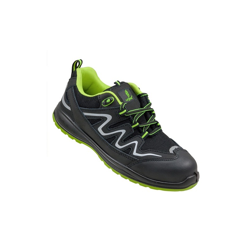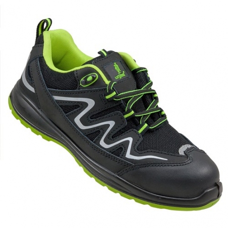 Półbut bezpieczny z metalowym podnoskiem. Zamknięty obszar pięty, właściwości antyelektrostatyczne, absorpcja energii w pięcie.