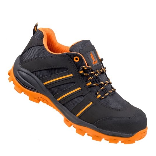 Półbut bezpieczny z metalowym podnoskiem. Zamknięty obszar pięty, właściwości antyelektrostatyczne, absorpcja energii w pięcie.