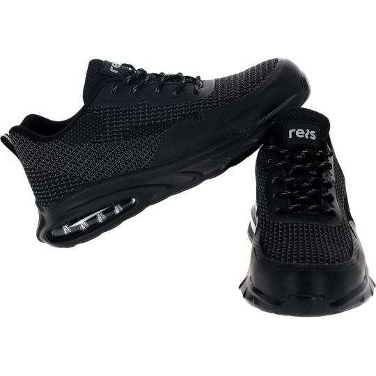 Buty bezpieczne, męskie. - wykonane z dzianiny poliestrowej w połączeniu z TPU - buty typu półbut, sięgające przed kostkę - sznurowane - podeszwa antypoślizgowa, olejoodporna wykonana z poliuretanu - stalowy podnosek wytrzymały na uderzenia z energią 200 J oraz zgniecenia do 15 kN - elementy odblaskowe - kategoria SB FO SR