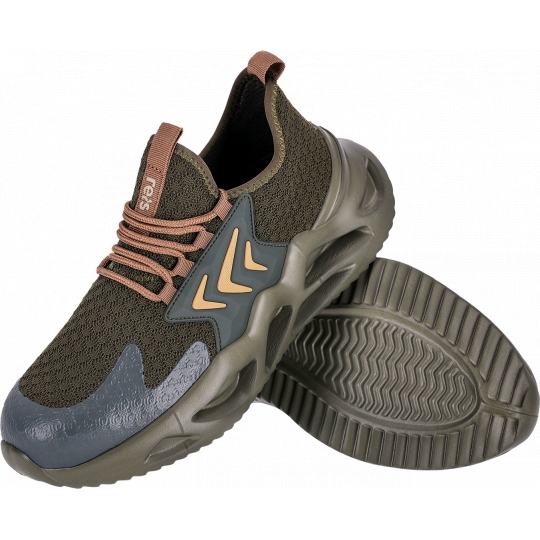Buty bezpiecznie CLUMP, męskie. - wykonane z dzianego materiału tekstylnego w połączeniu z TPU - wstawki z tworzywa TPR - buty typu półbut, sięgające przed kostkę - wciągane z możliwością ściągnięcia za pomocą sznurowadeł - podeszwa antypoślizgowa wykonana z EVA - stalowy podnosek wytrzymały na uderzenia z energią 200 J oraz zgniecenia do 15 kN - kategoria SB P