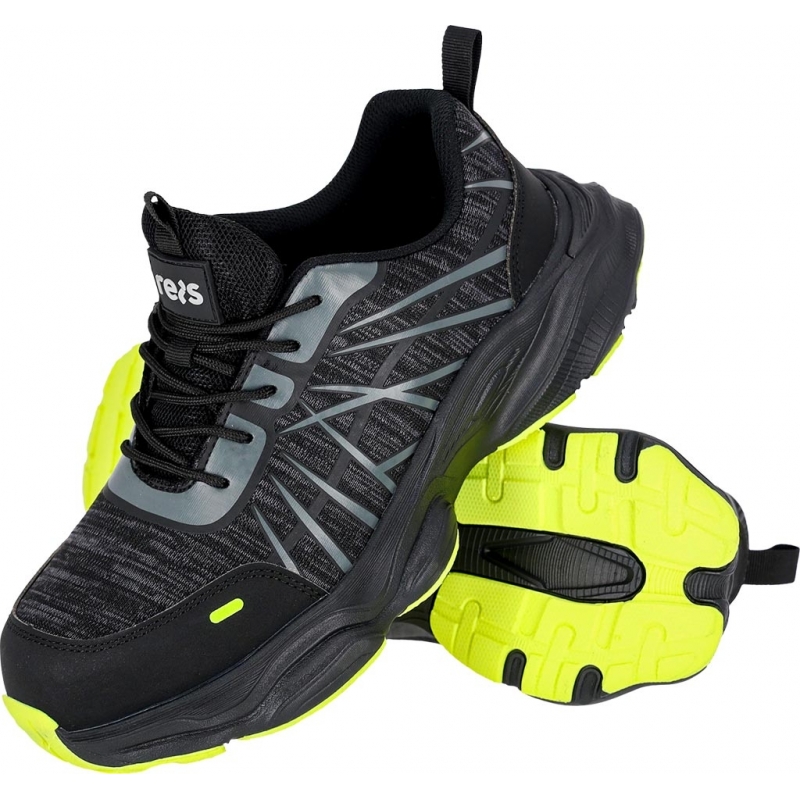 Buty bezpieczne HOOF, męskie. - wykonane z dzianego materiału tekstylnego w połączeniu z TPU - buty typu półbut, sięgające przed kostkę - sznurowane - podeszwa antypoślizgowa, antyelektrostatyczna, wykonana z tworzywa EVA oraz TPR - stalowa wkładka zabezpieczająca stopę przed przebiciem o nacisku 1100N - stalowy podnosek wytrzymały na uderzenia z energią 200 J oraz zgniecenia do 15 kN - kategoria S1P SR