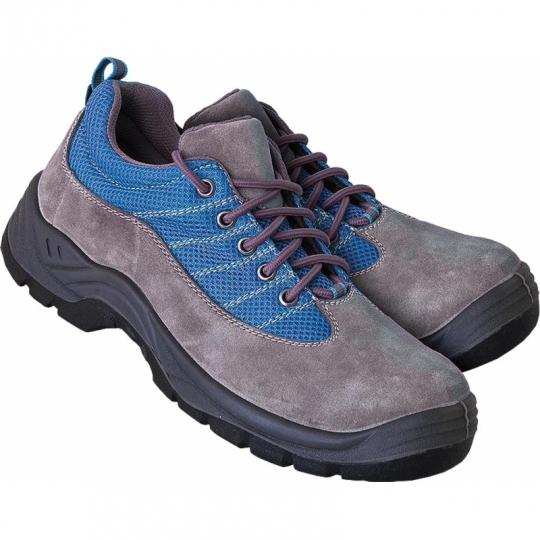 - wykonane ze skóry bydlęcej welurowej w szarym kolorze połączona z niebieską siateczką w górnej części buta