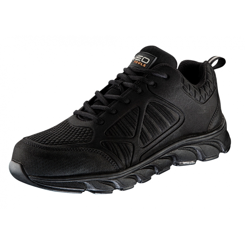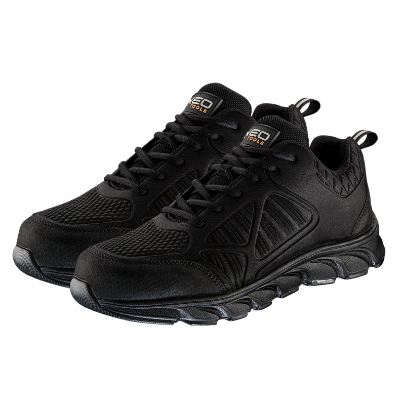 Pólbuty robocze S1P SRC, podnosek kompozytowy, wkładka kevlarowa, tkanina, dwumateriałowa podeszwa wykonana z EVA i gumy, podnosek z kompozytu, antyprzebiciowa wkładka z kevlaru, but wykonany w kategorii S1P SRC (SRC- odporność na poślizg na podłożu ceramicznym pokrytym roztworem laurylosiarczanu sodu (SLS) i na podłożu ze stali pokrytym glicerolem), bez elementów metalowych, antypoślizgowa podeszwa z systemem absorbującym wstrząsy, odporna na ścieranie, oleje, benzynę i inne rozpuszczalniki organiczne zabudowana pięta, wkładka antyelektrostatyczna, ciekawy, modny wygląd, rozmiar 36