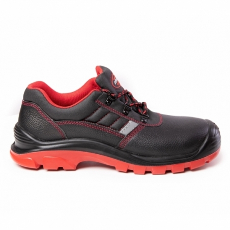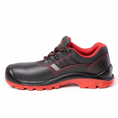 PÓŁBUT POLSTAR MAX-POPULAR CZERWONY O1 SRCPółbuty Max‑Popular Red to klasyczny model kategorii O1 wykonany ze skóry dwoinowej o grubości 1,6–1,8 mm. Konstrukcja zapewnia trwałość, wygodę i odporność na intensywne użytkowanie. Higroskopijna wyściółka oraz miękki miechowy język zwiększają komfort pracy. Podeszwa PU/PU o podwójnej gęstości oferuje odporność na oleje i węglowodory oraz właściwości antypoślizgowe SRC.