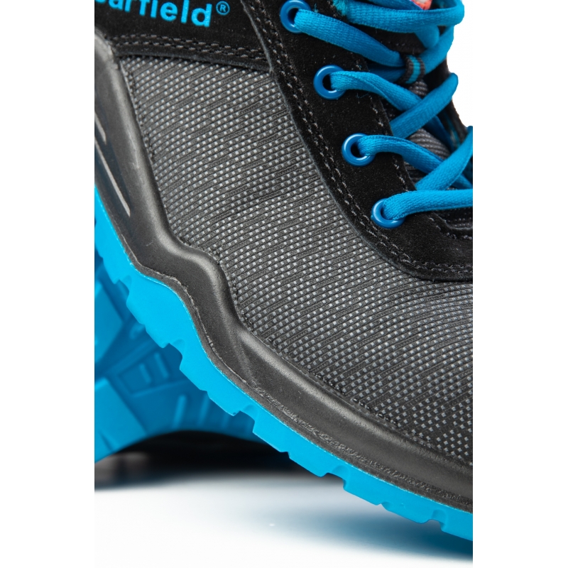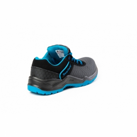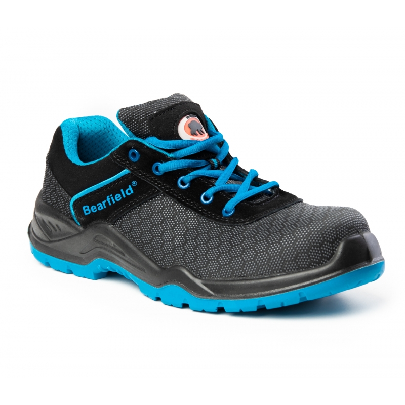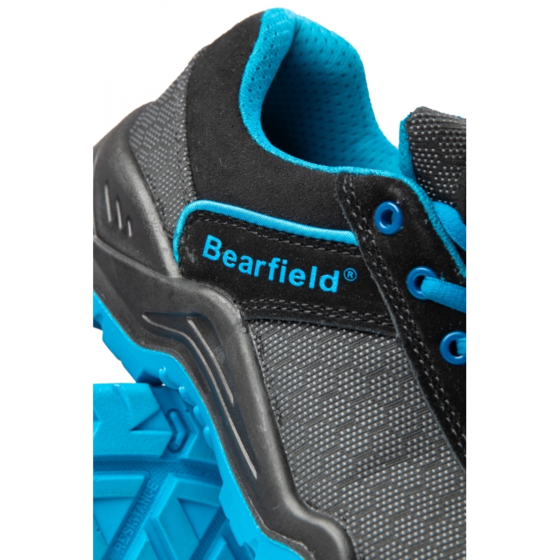 Półbuty ochronne Bearfield Hex to model kategorii S3, łączący wysoką ochronę z komfortem użytkowania. Cholewka wykonana z materiału Putek zapewnia odporność na absorpcję wody przez 60 minut, a miękki, miechowy język zwiększa wygodę noszenia.