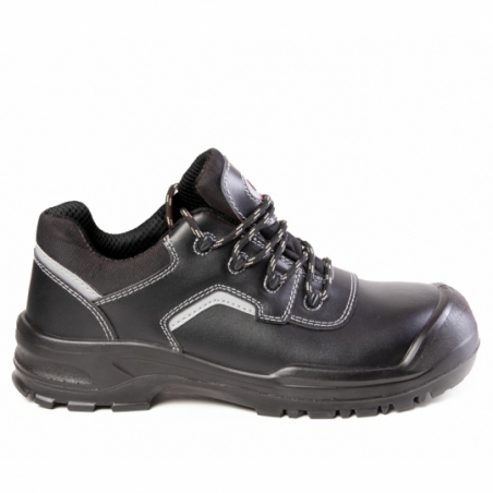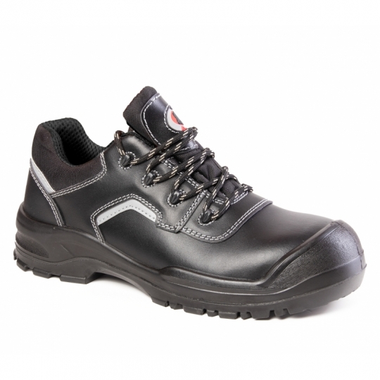 Półbuty Bearfield R03 Lico to solidny model kategorii S3 wykonany ze skóry licowej o grubości 1,8–2,0 mm. Zapewniają wysoką trwałość, odporność na warunki pracy oraz komfort dzięki miechowemu językowi z tkaniny Oxford.