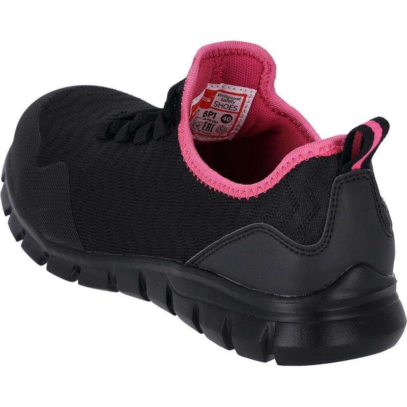 RAW-POL BRNUT to damskie buty bezpieczne typu półbut, wykonane z materiału tekstylnego. Model wciągany, z możliwością regulacji za pomocą sznurowadeł. Podeszwa gumowa jest antypoślizgowa i olejoodporna, a stalowy podnosek chroni przed uderzeniem 200 J oraz zgnieceniem do 15 kN. Kategoria ochrony SB FO SRA.