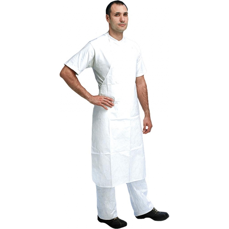 Fartuch przedni wykonany z materiału Tyvek. - długość: 108 cm - z karczkiem - zakładany na szyję z wiązaniem na paski z tyłu, dzięki czemu można idealnie dopasować fartuch do sylwetki - pakowane po 25 szt. w opakowaniu
