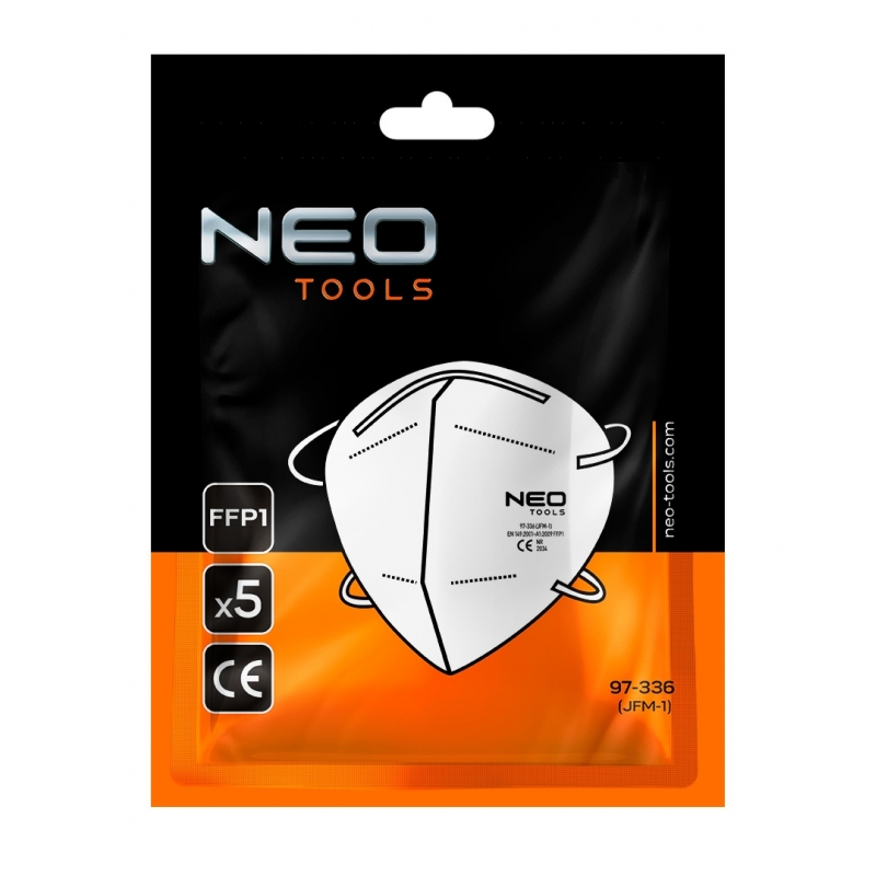Półmaska składana FFP1, 5 szt., CE; 5- warstwowa, kategoria III, FFP1- niski poziom ochrony, półmaski przeznaczone do stosowania, gdy stężenie substancji szkodliwej występującej w postaci aerozolu nie przekracza czterokrotnej wartości NDS; NR- do stosowania nie dłużej niż jedną zmianę roboczą; zgodność z normą EN149:2001+A1:2009