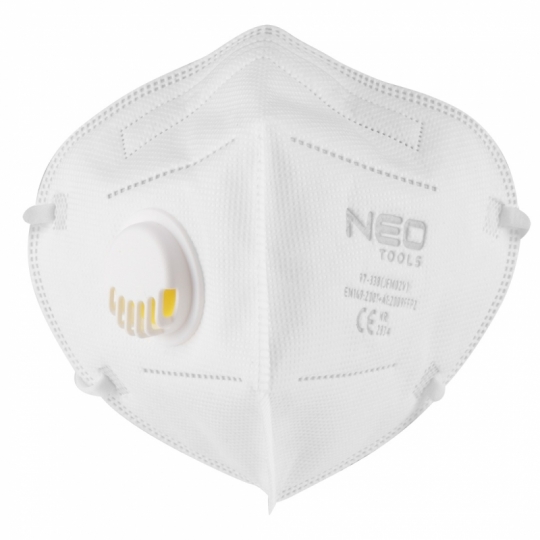 Półmaska składana FFP2, z zaworem, 5 szt., CE; 5- warstwowa, kategoria III, FFP2- średni poziom ochrony, półmaski przeznaczone do stosowania, gdy stężenie substancji szkodliwej występującej w postaci aerozolu nie przekracza dziesięciokrotnej wartości NDS; NR- do stosowania nie dłużej niż jedną zmianę roboczą; zgodność z normą EN149:2001+A1:2009