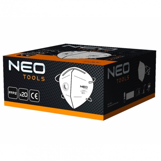 Półmaska składana FFP2, z zaworem 20 szt., CE; 5- warstwowa, kategoria III, FFP2- średni poziom ochrony, półmaski przeznaczone do stosowania, gdy stężenie substancji szkodliwej występującej w postaci aerozolu nie przekracza dziesięciokrotnej wartości NDS; NR- do stosowania nie dłużej niż jedną zmianę roboczą; zgodność z normą EN149:2001+A1:2009
