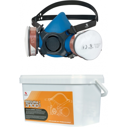 - w skład zestawu wchodzą: silikonowa półmaska SECURA 3100, dwa pochłaniacze 3021 A1, dwa filtry 3000.02 P2 R